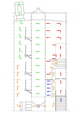 Der Trocknungsturm besteht aus 3 Abschnitten: